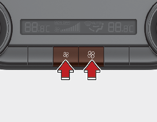 오른쪽을 누르면 풍량이 많아지고 왼쪽을 누르면 풍량이 적어집니다. 표시창에 풍량의 정도가 표시됩니다.
