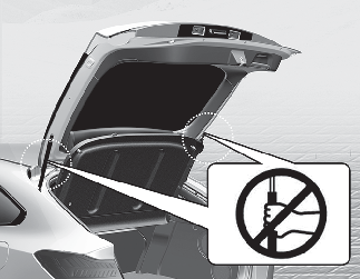 테일게이트를 지지하고 있는 부품(가스 리프터)을 잡지 마십시오. 이 부품을 잡고 힘을 가하면 안전사고의 위험이 있으니 주의하십시오.