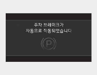 자동 정차 기능 작동 상태에서 전자식 파킹 브레이크(EPB) 체결 상태로 전환된 후 LCD 표시창에 경고 문구가 주차 브레이크 경고음이 1회 울립니다.