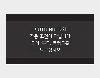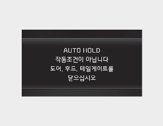 AUTO HOLD 작동조건이 아닙니다. 도어, 후드, 트렁크/테일게이트를 닫으십시오