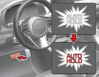 AUTO HOLD가 해제됩니다. 브레이크를 밟으십시오