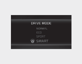 SMART 모드 선택 상태에서 급가속, 급선회 등으로 과도하게 SMART SPORT 모드를 사용하면 차량의 연비가 낮아질 수 있습니다.