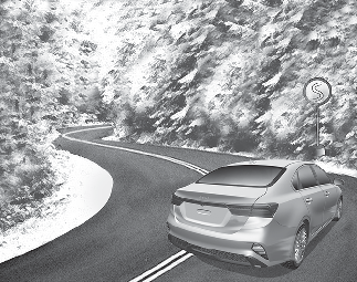 커브가 있는 길을 주행할 때는 브레이크를 밟거나 기어를 변속하지 말고, 미리 속도를 줄인 후, 가능한 차체를 똑바로 유지하면서 도십시오.