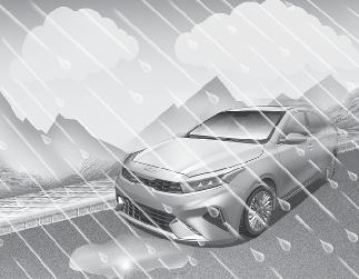 장마철이나 비가 많이 내리는 지역 등을 통과할 때는 특별히 주의하십시오. 타이어 중앙 부분(타이어 휠 허브)이 잠길 정도로 수위가 높으면 운행하지 마십시오. 물을 통과할 경우는 천천히 서행하고 물속에서는 제동 성능이 제대로 발휘되지 않을 수 있으므로 적당한 제동 거리를 유지하십시오. 물을 통과한 뒤에는 차를 서행하면서 브레이크를 부드럽게 몇 번 밟아 브레이크를 건조시키십시오.