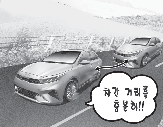 차간거리를 충분히 확보하고 스티어링 휠을 천천히 조작하십시오.