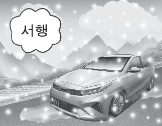 비포장도로, 눈길, 빙판길, 진흙탕 길을 주행할 때는 속도를 낮추고 제동 거리를 충분히 확보하십시오. 급하게 스티어링 휠을 조작하지 마십시오.
