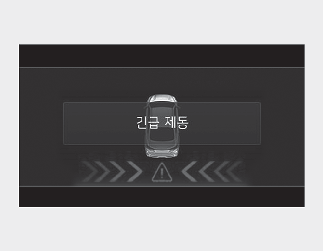 긴급 제동에 의한 정차 시 클러스터 등에 경고문이 표시됩니다.