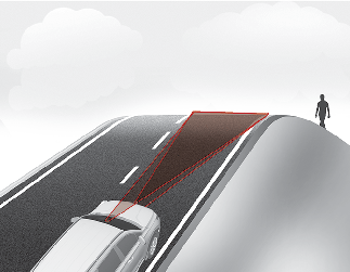 오르막길이나 내리막길에서는 전방에 있는 차량, 보행자 및 자전거 탑승자를 인식하지 못하여 경고 또는 제동을 도와주지 않을 수 있습니다.