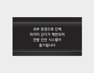 인식 센서 경고문이 표시되지 않거나 경고등이 켜지지 않더라도 전방 충돌방지 보조가 정상 작동하지 않을 수 있습니다.