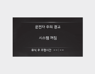 운전자 주의 경고가 휴식을 권유하지 않더라도 운전자가 피곤함을 느낄 경우 안전한 장소에 주·정차하여 휴식을 취하십시오.