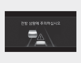 전방 상황 주의 알림이 발생하면 새롭게 나타난 전방의 차량이나 물체와 충돌할 수 있으므로 전방 도로 상황 및 주행 상태를 확인하고 필요하면 브레이크 페달을 밟아 직접 속도를 조절하십시오.
