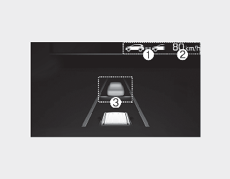 (1): 전방 차량 유무 및 설정된 차간거리 단계가 표시됩니다.(2): 설정속도가 표시됩니다.(3): 전방 차량 유무 및 목표 차간거리가 표시됩니다.
