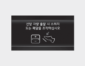 또한 정차 후 일정시간이 지나면 클러스터에 ‘전방 차량 출발 시 스위치 또는 페달을 조작하십시오’ 문구가 표시됩니다. 재출발을 위해서는 가속 페달을 밟거나「+」, 「-」또는「