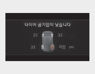 클러스터를 통해서 개별 타이어 공기압을 확인할 수 있습니다.