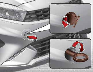 견인 후크를 홀에 넣어 오른쪽으로 끝까지 돌려 체결하십시오.
