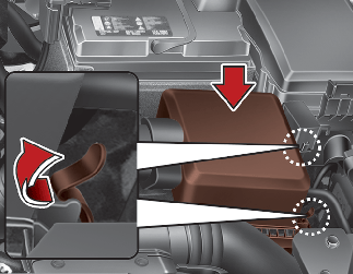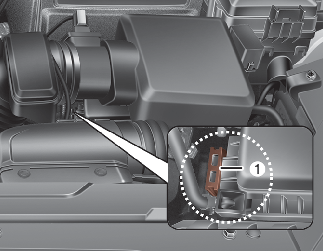 에어클리너 커버를 장착할 때 힌지부(1)를 정확하게 끼운 후 클립을 장착하십시오.