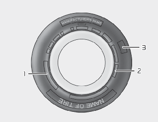 타이어의 옆면에는 타이어 형식이 표기되어 있습니다. 차량의 타이어 교체 시 다음과 같은 정보를 반드시 확인하십시오.