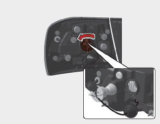 제동등/미등의 소켓을 시계 반대 방향으로 돌려 분리하십시오.