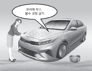 앞유리에 왁스가 묻으면 와이퍼의 손상 원인이 될 수 있으므로 주의하십시오.