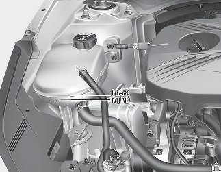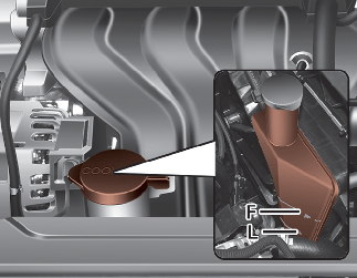 냉각수의 양은 매일 점검하여 필요시 보충하십시오. 냉각수의 양은 엔진이 차가울 때 냉각수 보조탱크 레벨 게이지에 표시되어 있는 최대선(F)과 최소선(L)사이에 있어야 합니다.