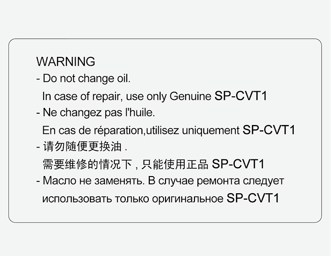 비순정품(자사 순정품과 호환 가능하다고 기재된 오일 포함) IVT 변속기 오일로 교체할 경우 변속감이 악화되고, 진동이 발생하며, 결국에는 변속기가 파손될 수 있습니다. 정품만을 사용하십시오.