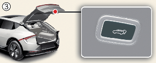 Press the power tailgate open/close button inside the vehicle or with the smart key for 1 second. The power tailgate opens with a warning sound.