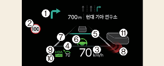 헤드업 디스플레이는 운전자 전면 유리창에 클러스터 및 내비게이션의 주요 정보를 표시하여 운전자가 시선을 돌리지 않아도 정보를 확인할 수 있게 해주는 편의 장치입니다.