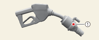 디젤 차량 주유 시에는 차단막(1)이 열릴 때까지 주유기를 끝까지 밀어 넣으십시오. 주유기가 완전히 삽입되지 않은 상태에서 주유할 경우 연료가 흘러 나와 화재로 이어질 우려가 있습니다.
