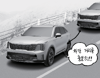 차간거리를 충분히 확보하고 스티어링 휠을 천천히 조작하십시오.