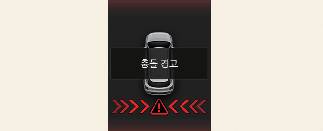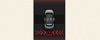긴급 제동에 의한 정차 시 클러스터 등에 경고문이 표시됩니다. 안전을 위해 즉시 브레이크 페달을 밟고 주변 상황을 확인하십시오.