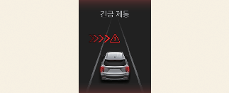 긴급 제동 중 가속 페달을 과하게 밟거나 스티어링 휠을 급격하게 조작하면 제동 제어가 해제됩니다.