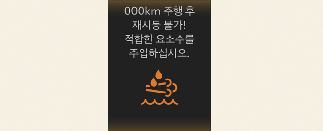 환경 등에 따라 표시된 주행 가능 거리와 실제 주행 거리는 달라질 수 있으므로 신속히 요소수를 보충하십시오.