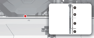 오일량이 D구간에 있다면 엔진 오일 주입구를 열고 C구간 상위까지 오일을 보충한 후, 오일량이 규정량에 속하는지 레벨 게이지로 다시 확인하십시오.