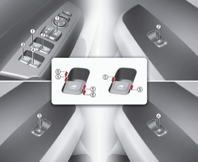 > 편의 장치 > 유리창 열림/닫힘 장치 > 유리창 열림/닫힘 스위치