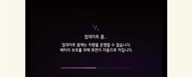 차량 내 화면에서 업데이트 진행률을 확인할 수 있습니다. 업데이트 결과는 차량 내 화면이나 스마트폰 알림에서 확인할 수 있습니다.