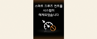 스마트 크루즈 컨트롤이 해제되면 전방 차량과의 간격이 유지되지 않습니다. 전방 도로 상황 및 주행 상태를 확인하고 필요하면 브레이크 페달을 밟아 차량 속도를 직접 조절하십시오.