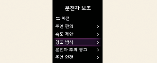 경고 방식을 변경하면 다른 운전자 보조 시스템의 경고 음량도 같이 변경될 수 있습니다. 고려하여 변경하십시오.