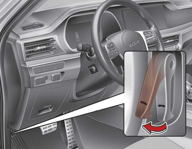 엔진 후드를 중간 정도 들어 올리면 저절로 완전히 열리게 됩니다.