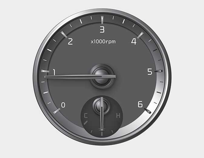 1분당 엔진 회전수(rpm)를 나타냅니다. 적정한 변속시기를 선택하는데 사용하고 엔진의 과회전 또는 과부하를 방지하십시오.