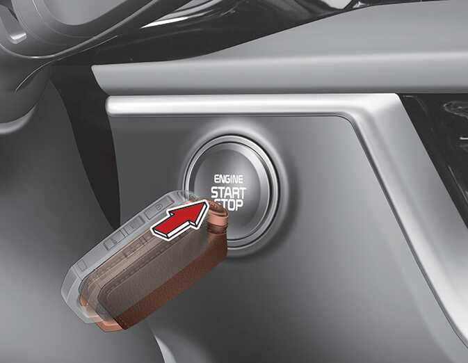 스마트키의 배터리가 방전되거나 전자기기에 의한 전파방해로 시동이 걸리지 않는 경우 스마트키로 시동 버튼을 직접 누르십시오. 스마트키로 시동 버튼을 직접 눌러도 시동이 걸리지 않으면 자사 직영 서비스 센터나 서비스 협력사에 의뢰하십시오.