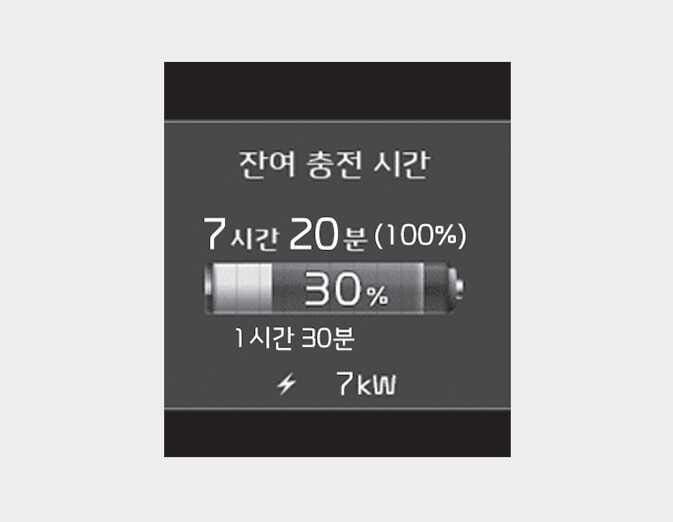 충전이 시작되면 클러스터에 충전 예상 소요시간이 약 1분 동안 표시됩니다.