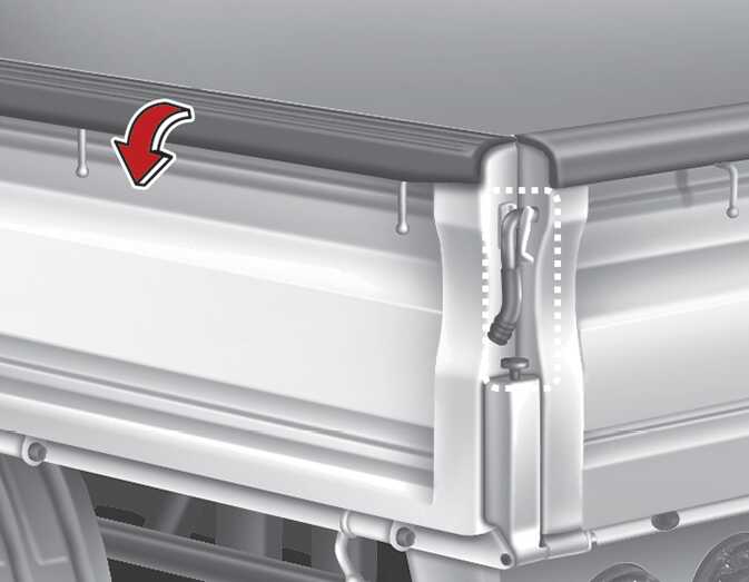 적재함 뒤 도어를 열어서 내리게 되면, 뒤쪽의 외장 램프를 가리게 됩니다. 이럴 경우 다른 도로 운전자에게 안전삼각대나 다른 도구를 이용하여 경고를 주십시오.