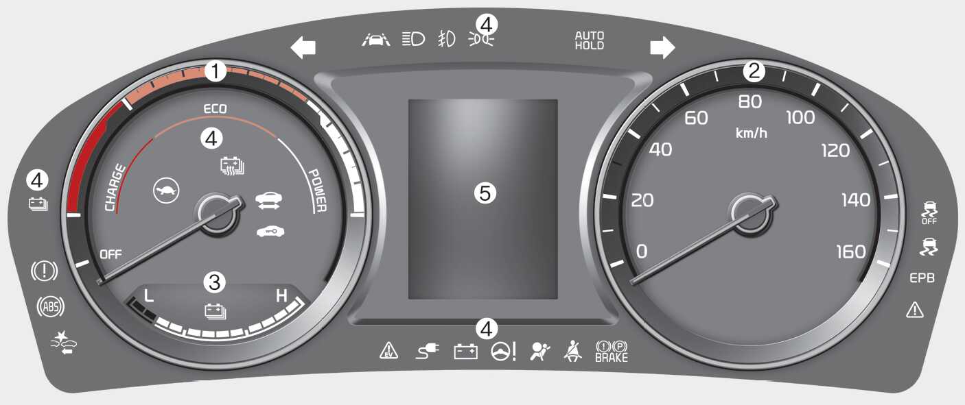 예시된 클러스터 형상과 LCD 표시창의 내용은 실제 차량의 형상 및 내용과 상이할 수 있습니다.