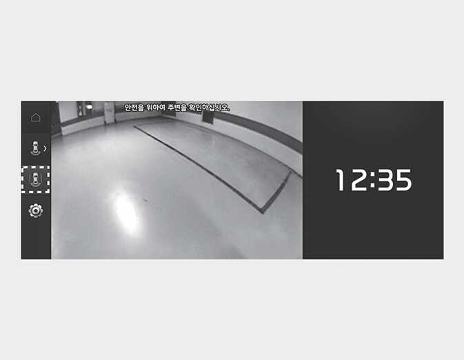 'D'(주행) 또는 'N'(중립)에서 주차/뷰 버튼(1)을 누르면 영상이 켜집니다.