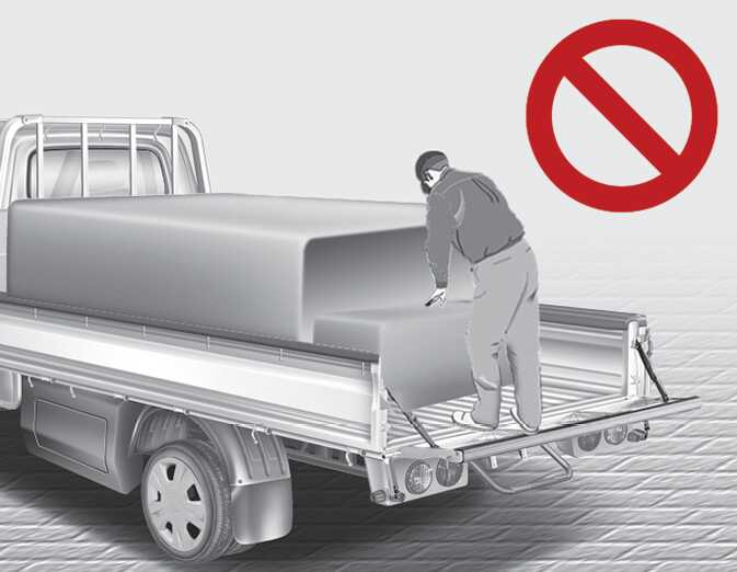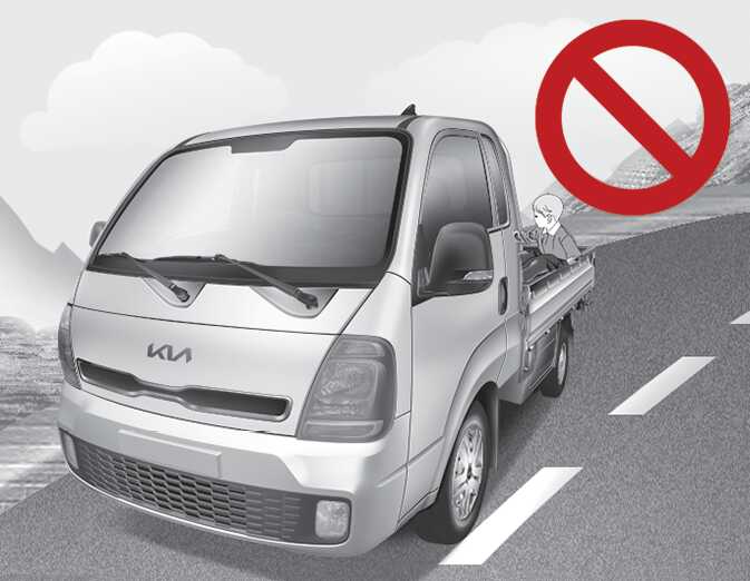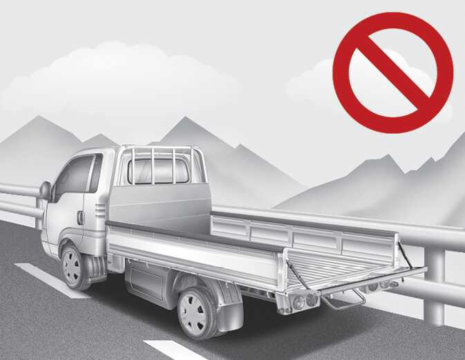 적재함을 열어 놓은 상태로 주행하지 마십시오.