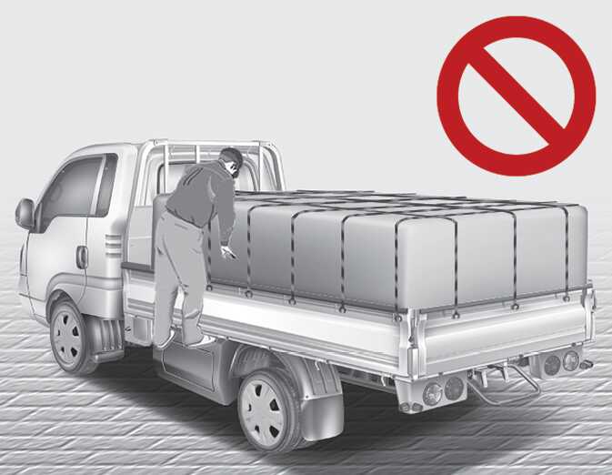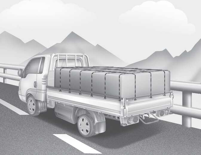 적재함의 화물이 추락하지 않도록 확실하게 고정하십시오.
