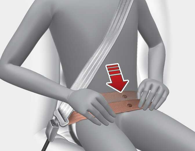 안전벨트의 골반띠는 가능한 낮게 해서 골반 부분까지 내려오게 하십시오. 골반띠가 골반 부분을 편안하게 감싸도록 착용하십시오. 골반띠를 허리부분에 착용하지 마십시오.