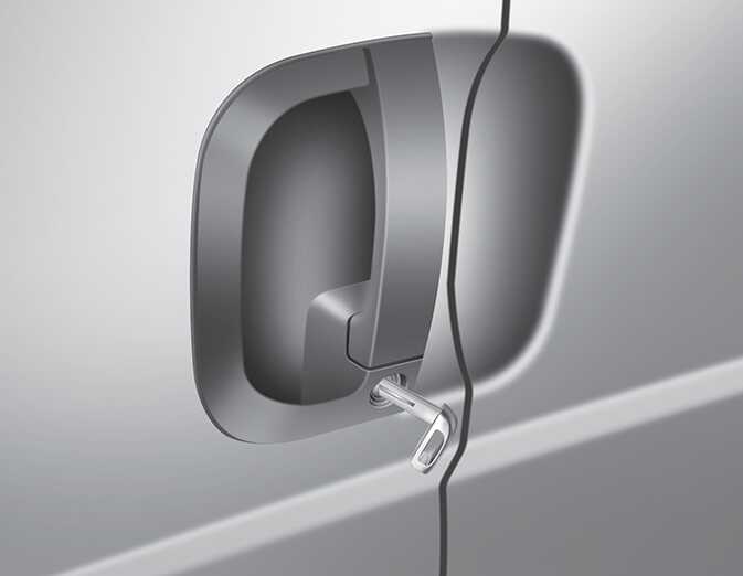 비상 키로 모든 도어를 잠그려는 경우 실내에서 중앙 도어 잠금/잠금해제 버튼을 이용하여 모든 도어를 잠그고 운전석 도어 손잡이를 이용하여 도어를 열고 하차한 후 도어를 닫고 비상 키로 운전석 도어를 잠그십시오.