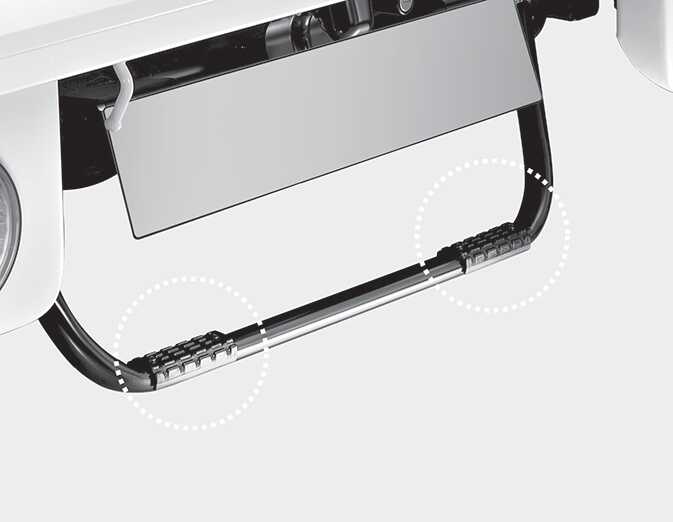 적재함에 오르내릴 때에는 지정된 발판 이외에 다른 부분을 밟게 되면 차량 파손으로 인한 부상의 위험이 있으므로 주의하십시오.