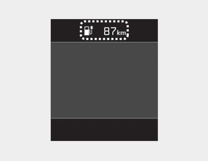 “---” 가 표시된 이후에는 곧 차량이 멈출 수 있으니 즉시 안전한 지역으로 이동하여 차량을 정차해야 합니다.(주행 속도, 냉난방 사용, 날씨, 운전습관 등 사용 환경에 따라 달라짐).